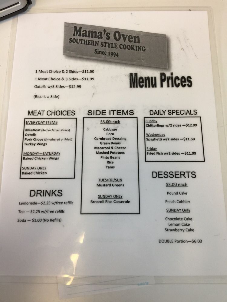 Mama's Oven Menu (Update 2025)